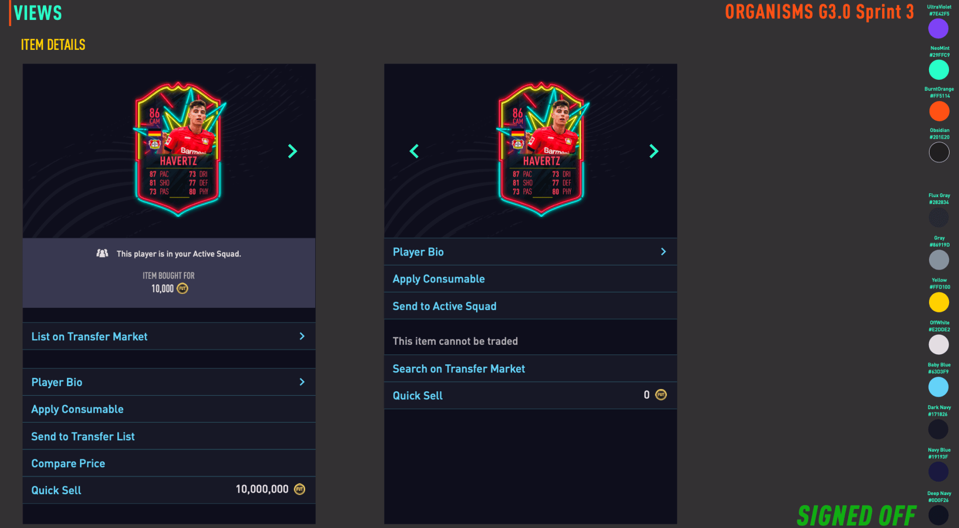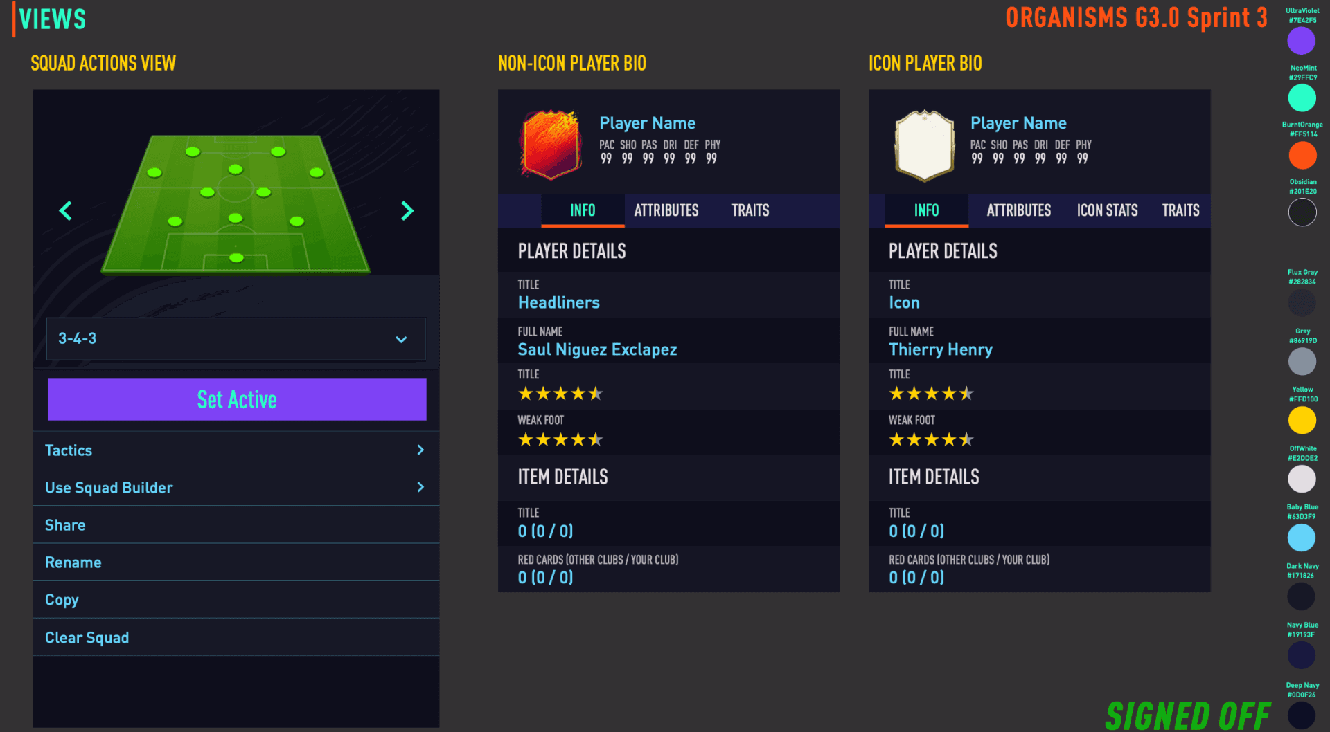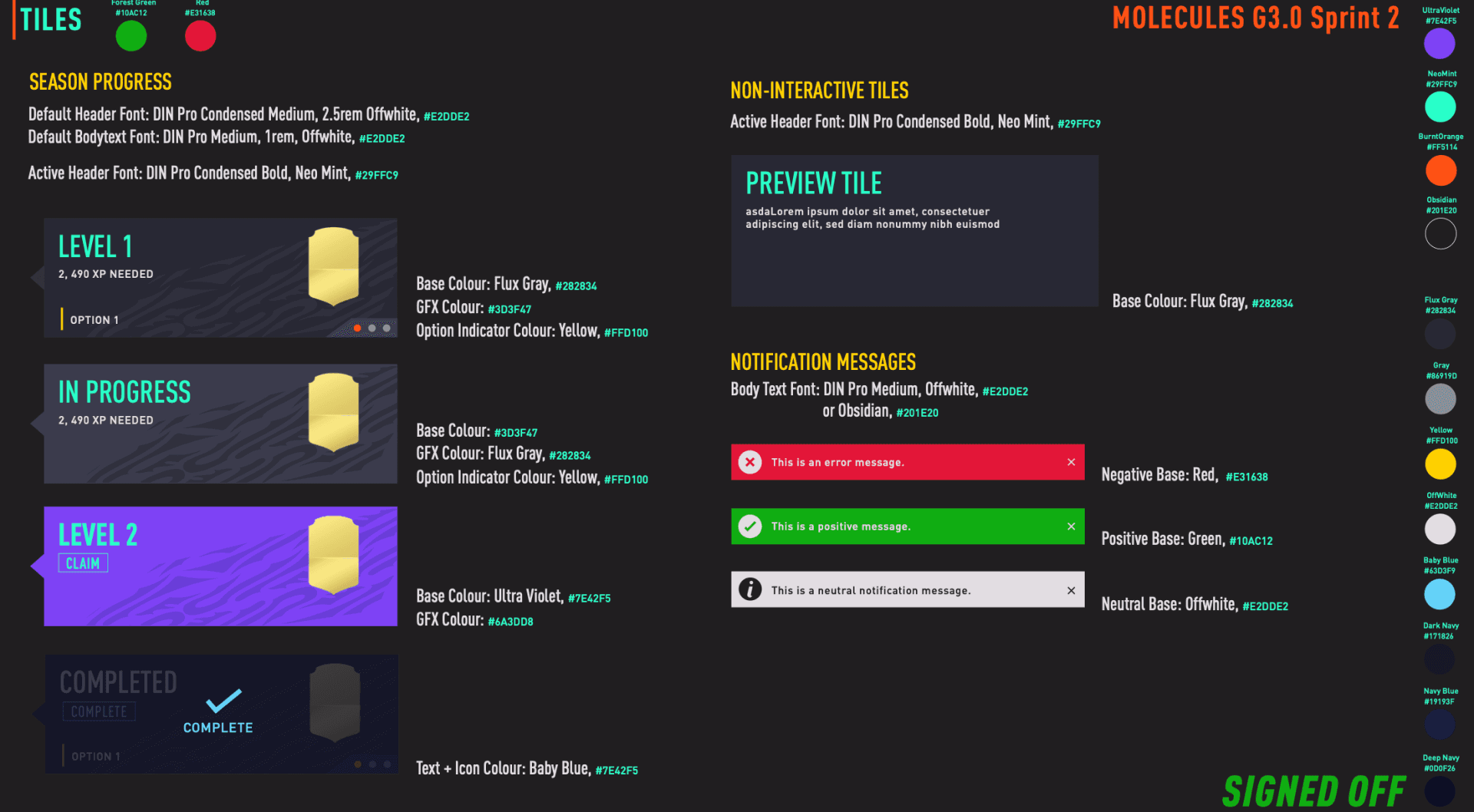 As the sole Associate Interface Designer for EA Sports’ FIFA 21 Companion App team, my primary role involved designing, documenting, and implementing various User Interfaces and elements that enhances our players’ overall user experience on mobile and web. The most notable part of this role was the reskin of the Companion and Web App for FIFA 21 to maintain the same design language as the console game. I also made sure there is some parity between the Companion App / Web App and the console game by translating some new features and bringing them into the mobile interface, such as the new Playtime feature. I have also piloted the use of Atomic Design in the reskin process, speeding up this part of the design process, making it easier for engineers to implement new and existing interface elements.