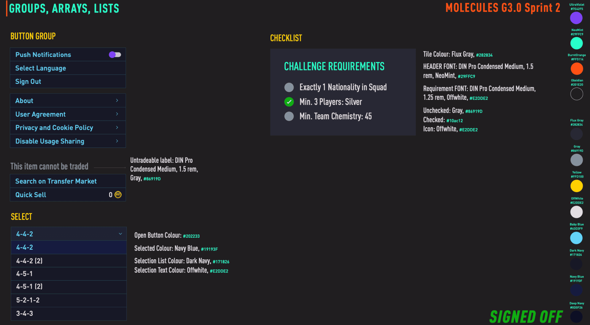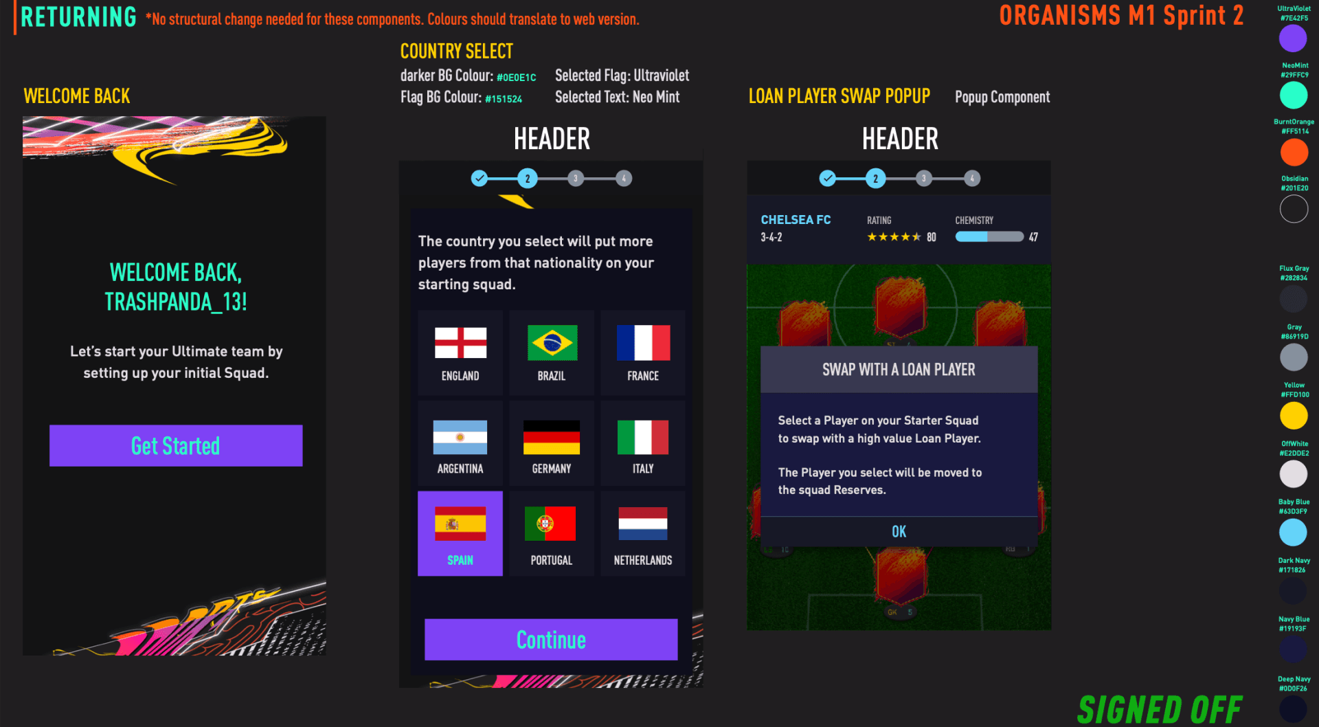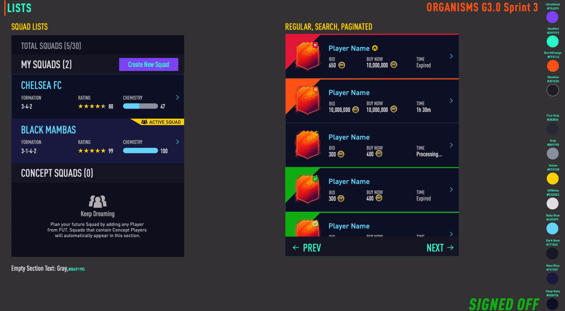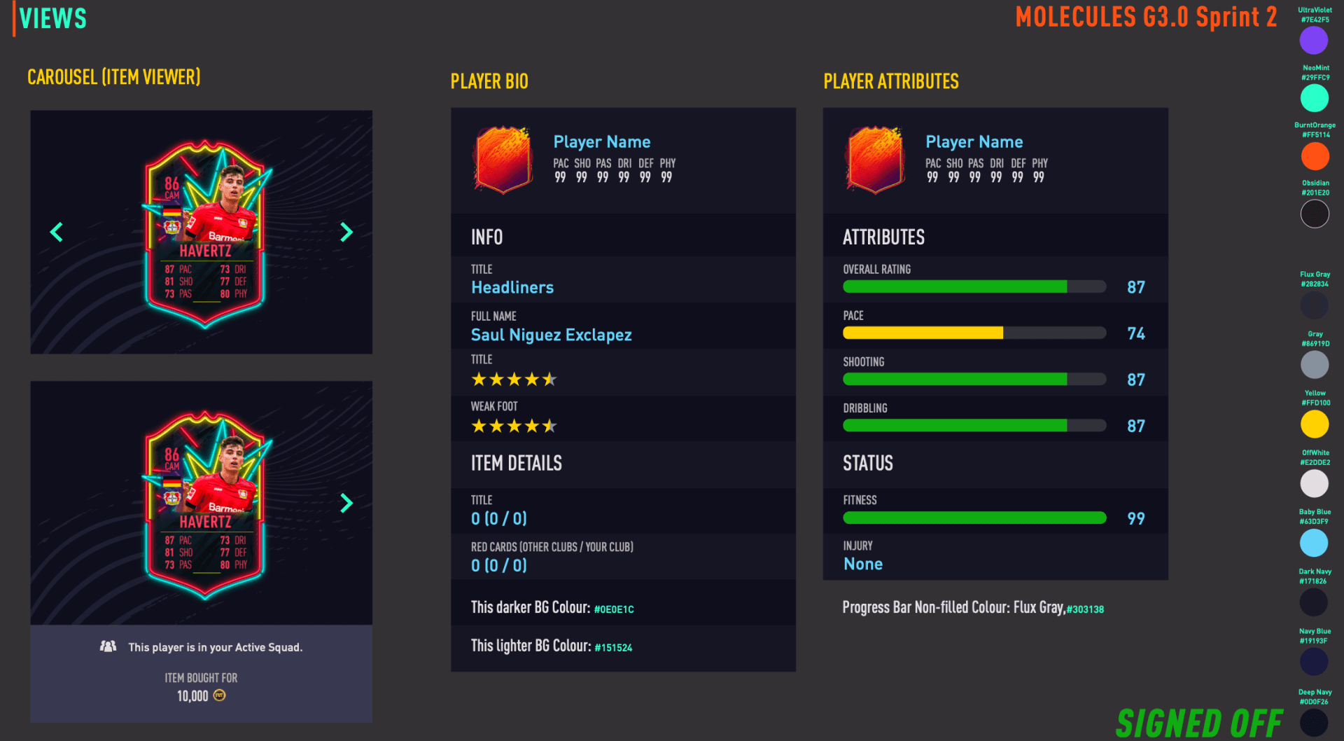 As the sole Associate Interface Designer for EA Sports’ FIFA 21 Companion App team, my primary role involved designing, documenting, and implementing various User Interfaces and elements that enhances our players’ overall user experience on mobile and web. The most notable part of this role was the reskin of the Companion and Web App for FIFA 21 to maintain the same design language as the console game. I also made sure there is some parity between the Companion App / Web App and the console game by translating some new features and bringing them into the mobile interface, such as the new Playtime feature. I have also piloted the use of Atomic Design in the reskin process, speeding up this part of the design process, making it easier for engineers to implement new and existing interface elements.