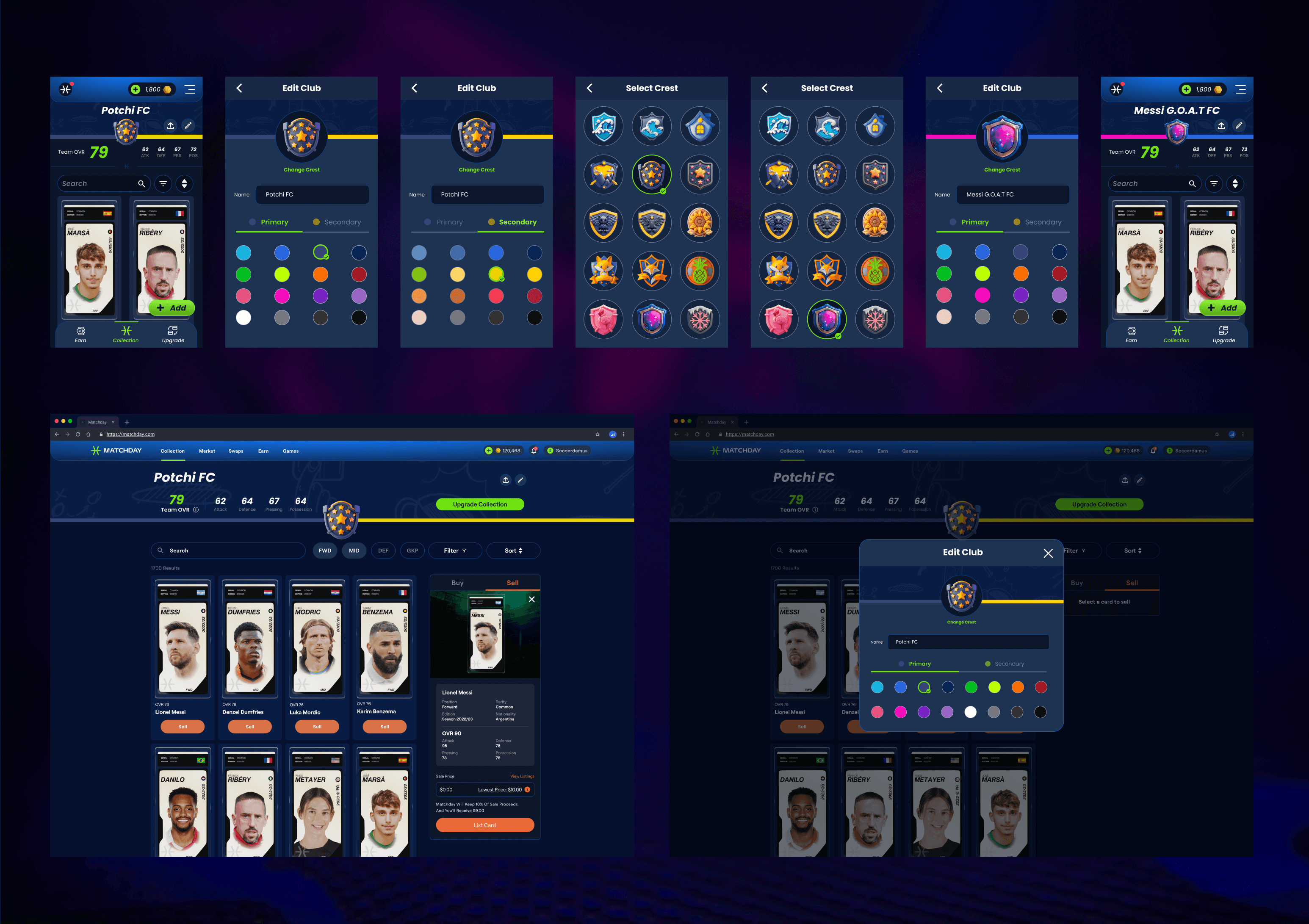 Research: Audited popular customization flows from games like FIFA Mobile, then adapted ideas to suit Matchday’s brand, tech constraints, and player behaviors.