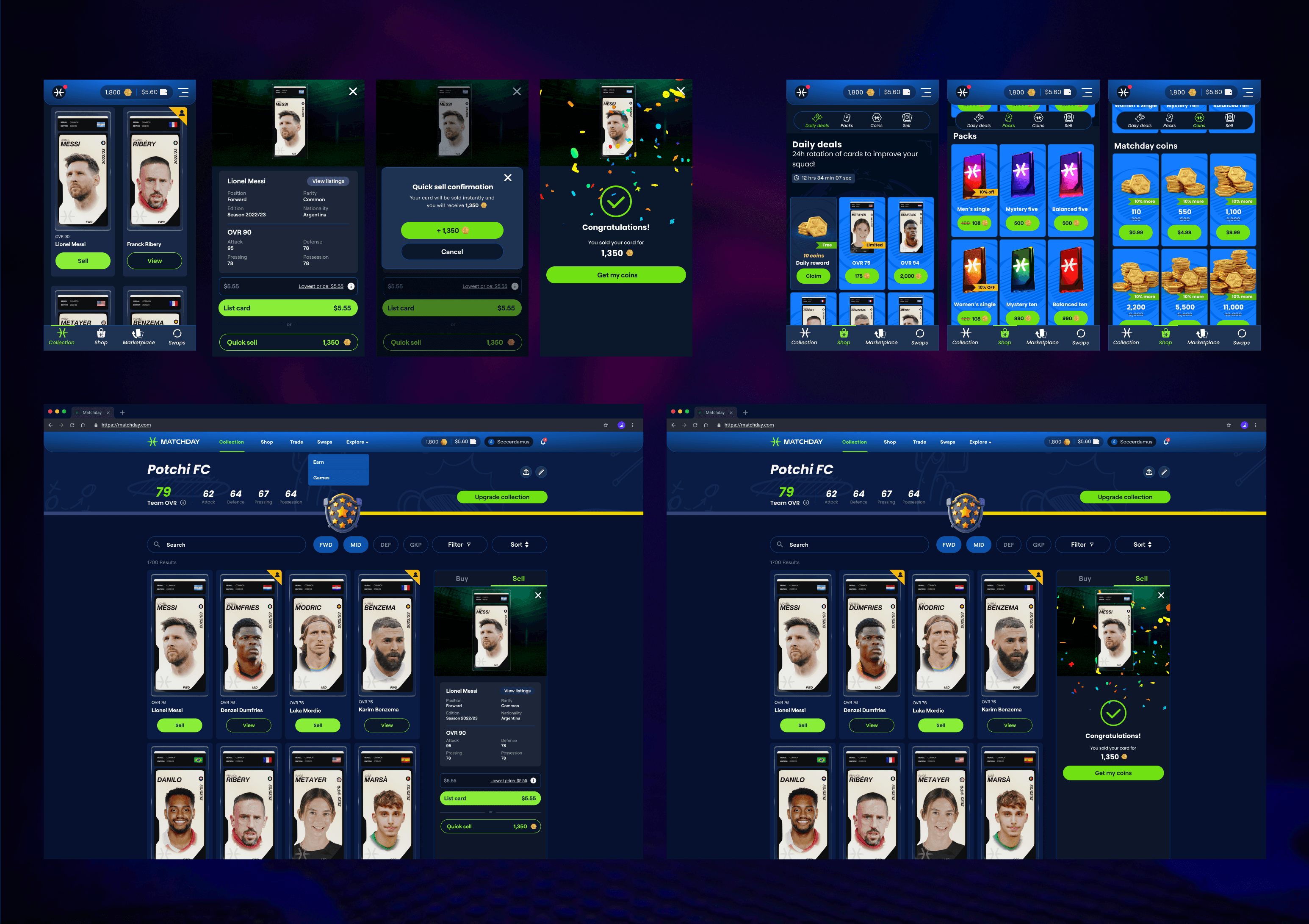 Maintained visual parity with Matchday Champions while introducing platform-specific styling. The design balances familiarity across both products with a refined display aesthetic unique to Matchday.com.