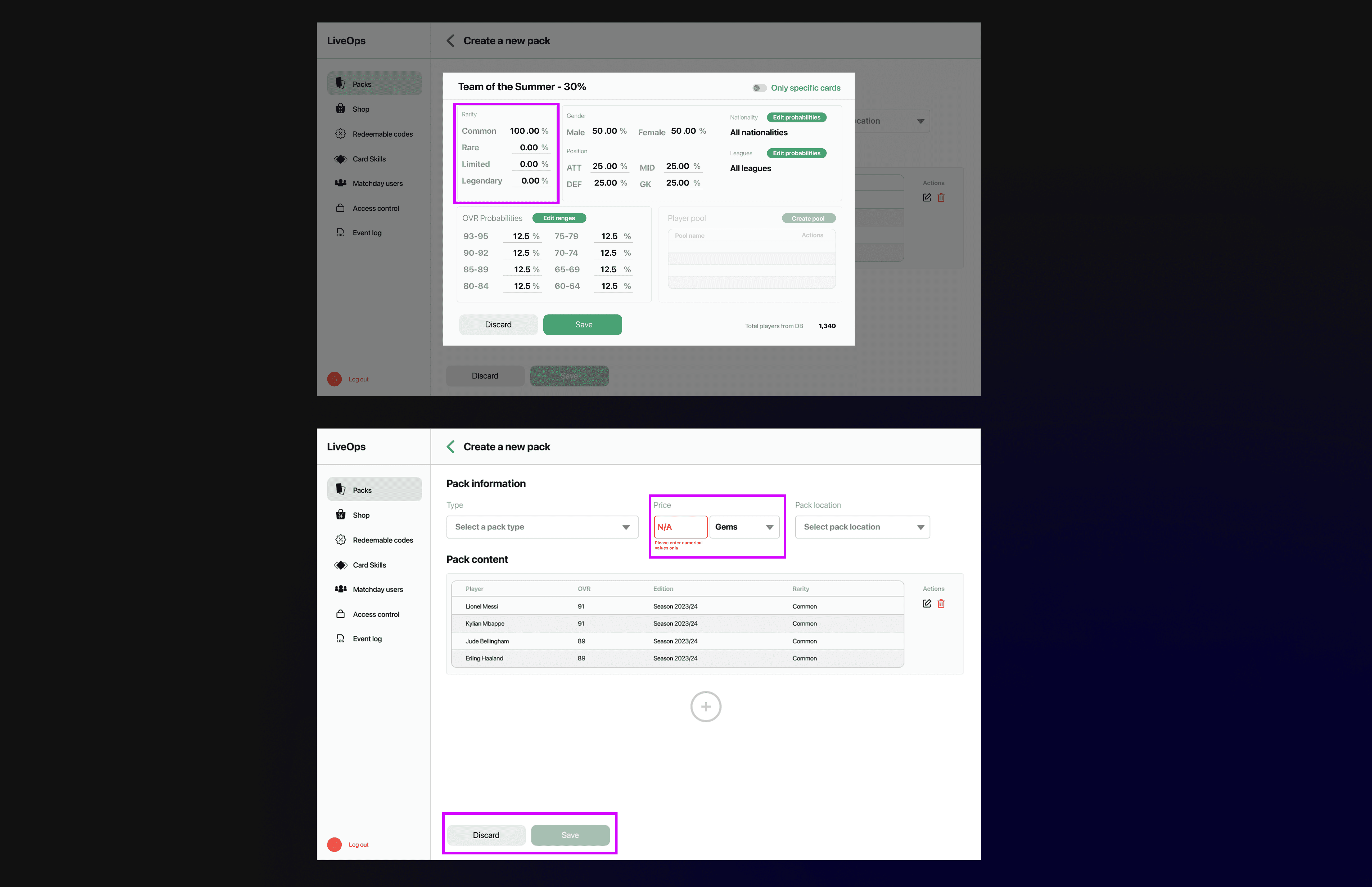 Error-Proofing through UI: I implemented functional guardrails directly into the interface—such as required fields and probability counters—to catch human errors before they could ever impact the live game store.