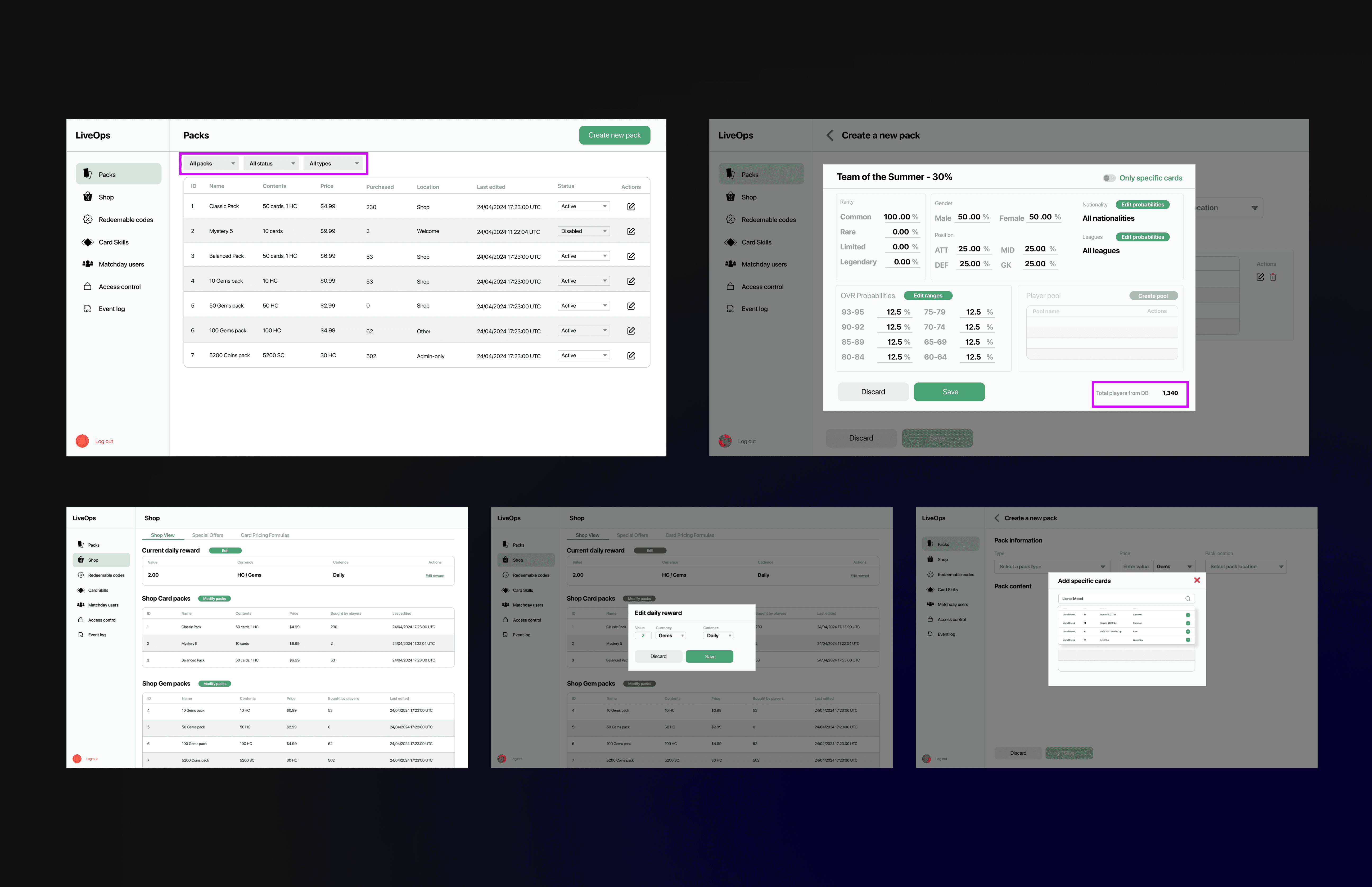Data-Driven UI Feedback: I integrated real-time feedback mechanisms, such as probability counters and player database totals, to give operators immediate visibility into the impact of their changes before they hit production.